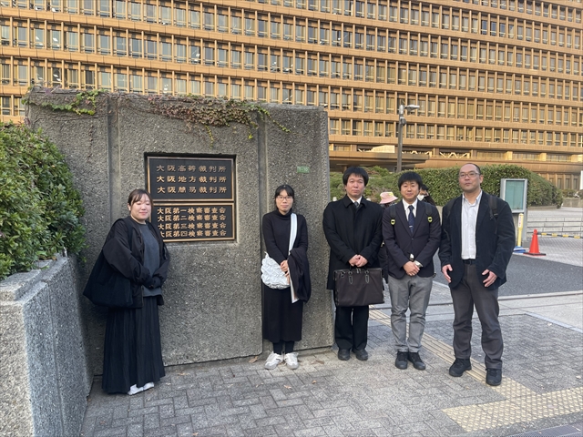 12月2日、大阪弁護士会主催の裁判傍聴会が開かれ、青年室のフィールドワークとして参加しました。傍聴会では、まず裁判制度についての簡単な説明や、傍聴にあたっての留意事項についての説明に続いて、実際に法服を着て裁判官や証言台での場面を体験することもできました。